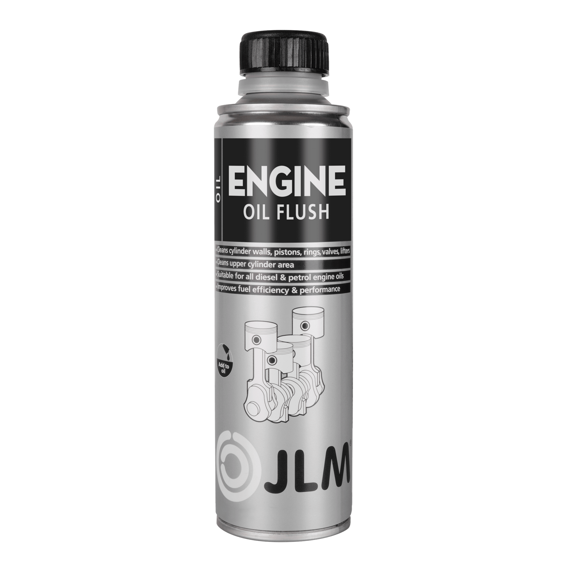 JLM Engine Oil Flush cleans aged and dirty engines and engine oil quickly and effectively, improving engine performance and reducing fuel consumption. The effective additives in JLM Engine Oil Flush dissolve old oil remnants and accumulated dirt in the engine. Engine Oil Flush cleans the lubrication system and essential components such as cylinder walls, pistons, piston rings, valves, valve guides and the combustion chamber. The engine noise reduces because the moving parts of the engine are cleaned thoroughly. JLM Engine Oil Flush is suitable for all diesel, petrol, LPG/CNG and stationary engines. In addition to cleaning, Engine Oil Flush Pro provides extra protection to the engine and internal components. JLM Engine Oil Flush can be mixed with all mineral, synthetic, monograde and multigrade oil types.